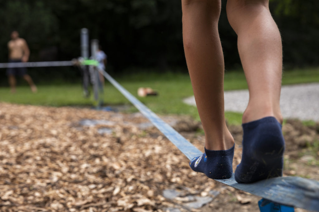 Adaptés pour le loisir et l’entraînement, les blocs d’escalade et le parc à slacklines en libre accès sont destinés à un large public.